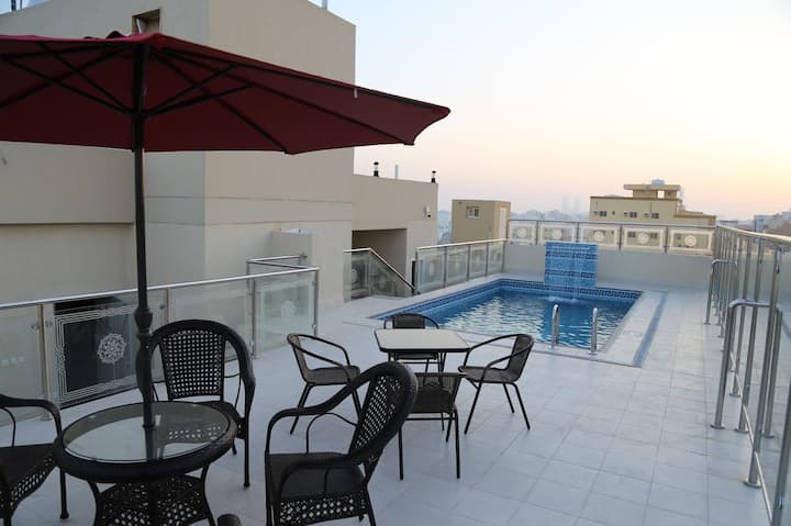 This is one of the few places in the area with a pool.