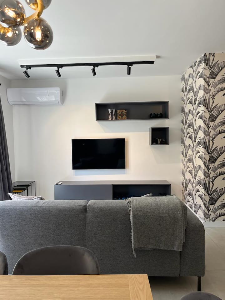 There are 3 mounted AC units (living room and the bedrooms) for cooling, heating and drying of the apartment.