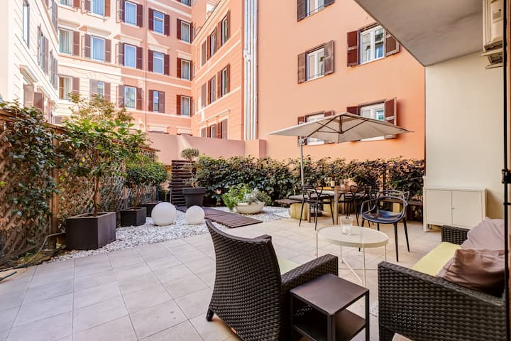 That's right: call it a patio, call it a garden: this studio boasts a rare outdoor space, an incredible feature in central Rome, which effectively doubles the space available!