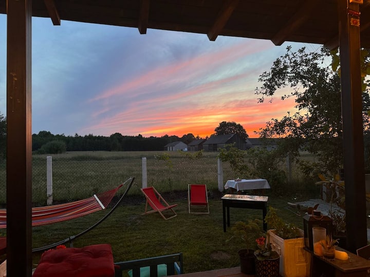 Teodozia pod Gwiazdami is a peaceful countryside home just 1 hour from Warsaw, ideal for rest, retreats, workshops, or small weddings. The estate sleeps 12–16 guests and features a sauna, terrace, and firepit, surrounded by forests, orchards, and open fields. Perfect for creative getaways, family weekends, or company offsites beneath the stars.