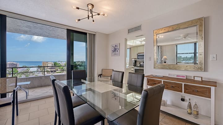 A private balcony off the master bedroom, a private balcony off the guest bedroom and a balcony off the main living area all provide you with magnificent views of the gulf and the Siesta Key infamous magical sunsets. Recently remodeled to provide an open concept, this condominium will be the answer to your vacation dreams.