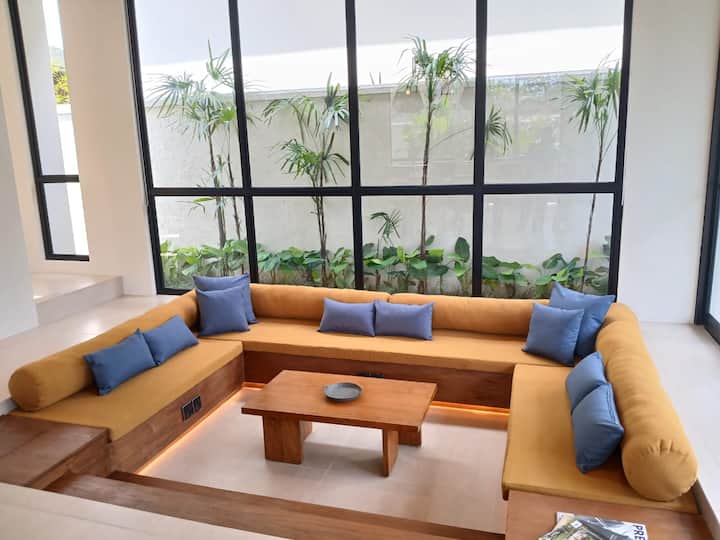 This beautiful new house boasts open space kitchen and living room with a modern sunken couch area for you to relax. The entire front side of the house can be opened for fresh air or kept closed for people who prefer spending their days with aircon.