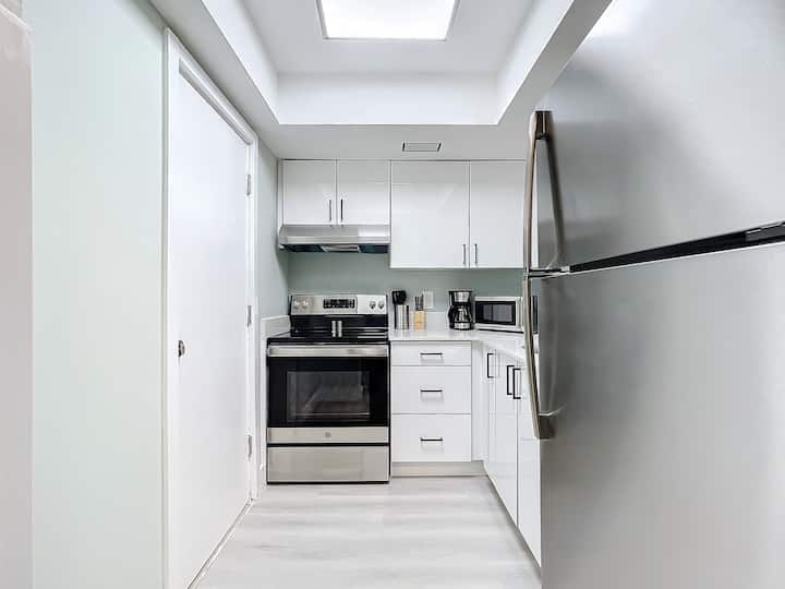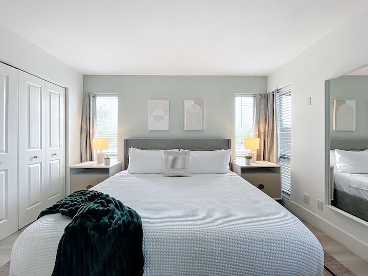 Welcome to our renovated one-bedroom apartment with Water/Pool view, perfect for a getaway or business trip! Cook in the equipped kitchen, relax in the spacious living room, or unwind on the screened-in balcony. The master bedroom offers a king-size bed, and a sofa bed in the living room. A full bathroom with a tub and shower adds to your comfort. Enjoy access to a refreshing pool. Conveniently located near Marine schools, restaurants, shops, the beach, and downtown Fort Lauderdale.