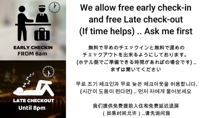 2 minutes to Makuhari Messe, near Tokyo Disneyland. Public transportation is available 24 hours a day