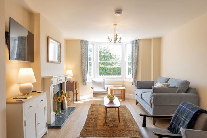 Sitting Room: Sofas and chairs, Smart Samsung TV, bay window, electric fire.