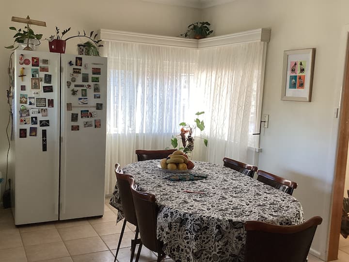My home is cosy, comfortable and clean with a few areas needing renovations. Airport is 14 kms distance. Melbourne CBD at 15km distance with bus, train and tram services available.