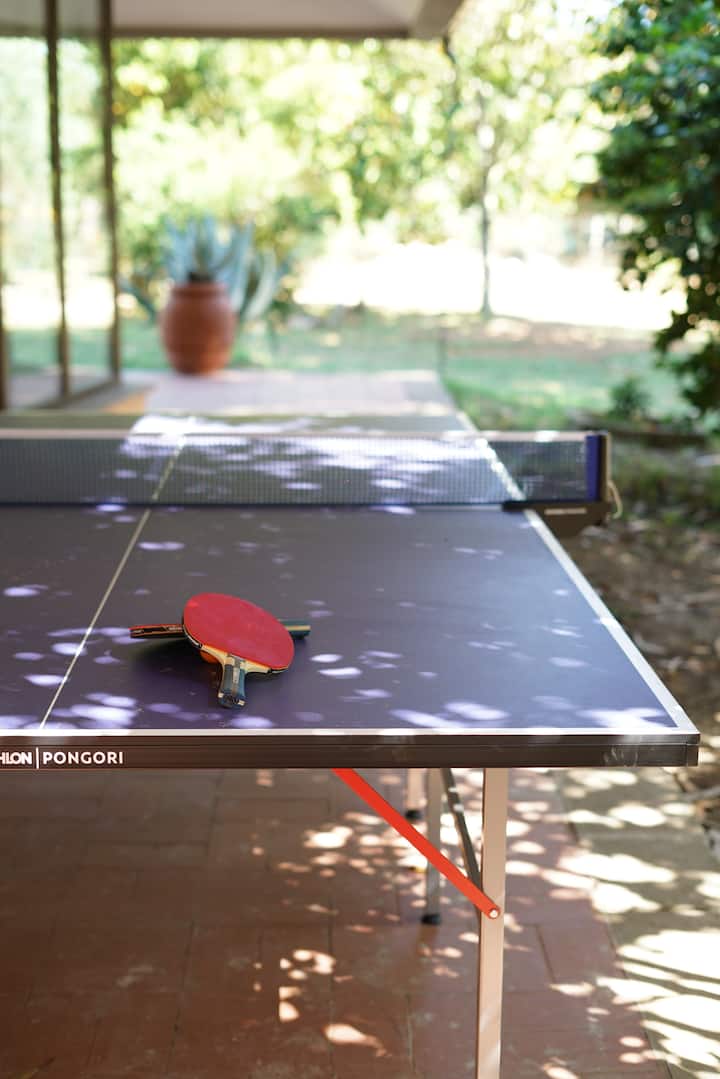 Under the 250 sqm patio that surrounds the entire villa there is a dining table near the kitchen, an outdoor living room and the 5-seater hot tub on the side of the pool and the ping pong table in the part overlooking the olive grove.