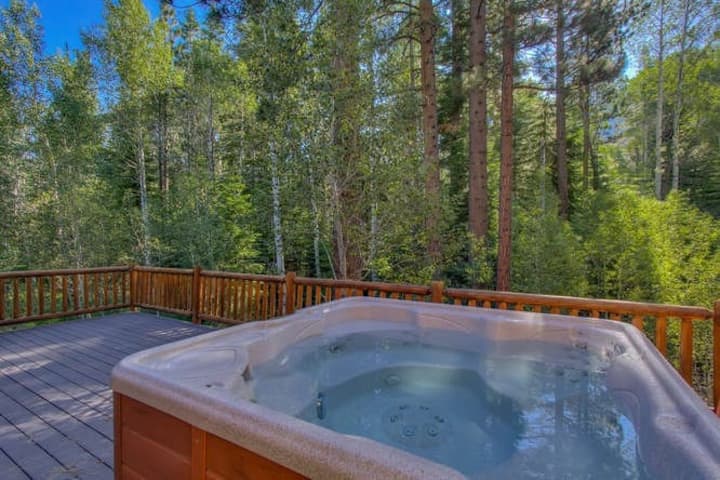 Located in the heart of Christmas Valley looking up at Echo Summit. Sitting on an acre of forest,our South Lake Tahoe lodge by owner backs up to the bank of the South Upper Truckee River. Experience the ambiance of nature at its best and still be close to South Tahoe amenities and fun activities.