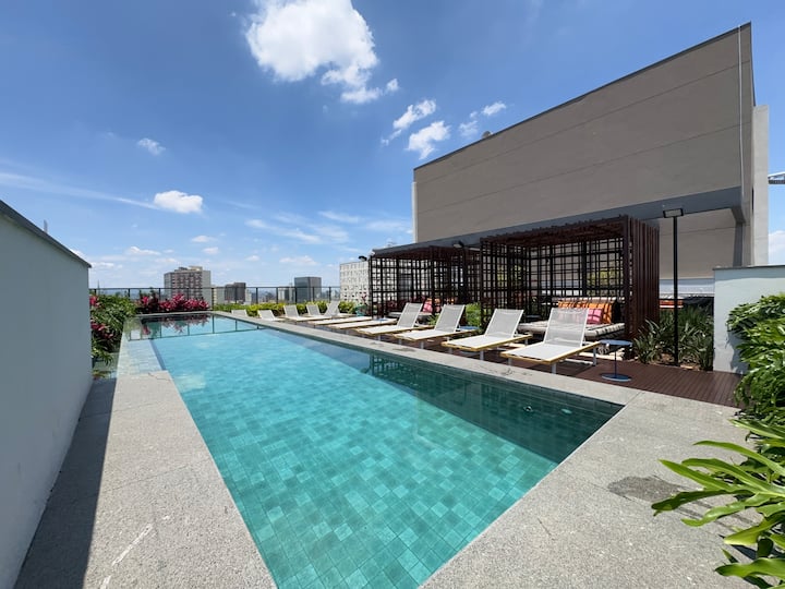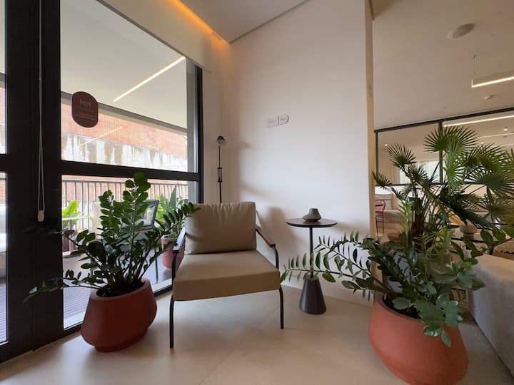 Relax in this calm and stylish space, in one of the best tourist neighborhoods in São Paulo. Ideal for short and long stays, with a balcony and a lot of tranquility