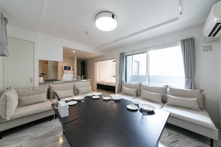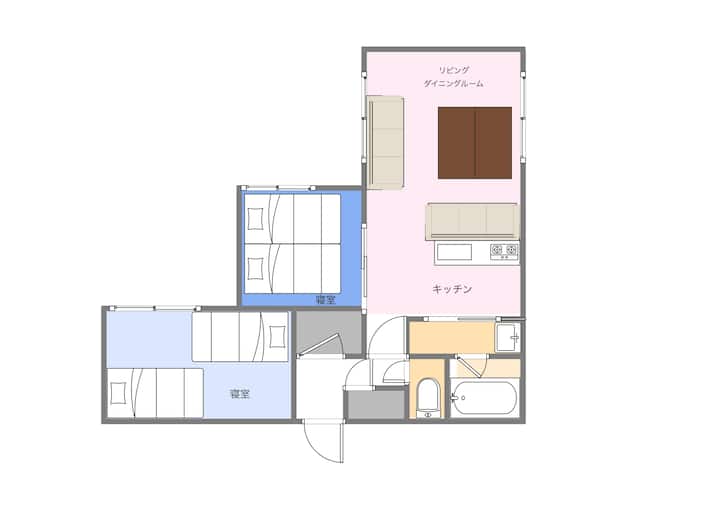 This spacious 2LDK apartment features two bedrooms and a comfortable living area — perfect for families or small groups.