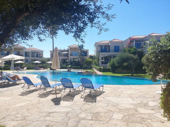 Welcome to Casa Elysia, a newly renovated 1-bedroom apartment just steps from the beach in a seaside village near Chania! Ideal for couples or friends, it accommodates 2 guests with a fully furnished bedroom, equipped kitchen, and modern bathroom. Enjoy the huge shared pool and easy access to local restaurants, cafes, and 24/7 bus service to Chania. Perfect for a relaxing beach getaway with all the best of Greece nearby!