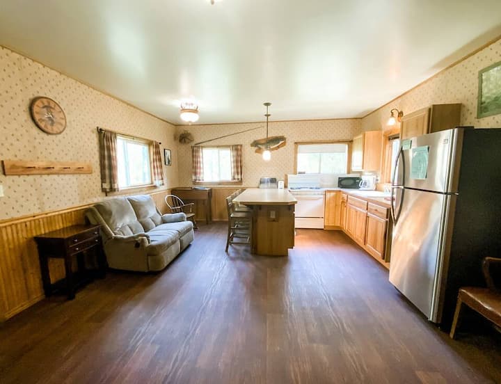 As this is a winter rental, snowfall is likely during your stay. In the even of a storm, we will plow a path to your cabin as soon as possible so you can drive in and out of the property. We will hang a shovel outside of your cabin and it will be your responsibility to shovel out a path to your car and anything else you might need. The state and county will plow the road all the way from our resort to town.