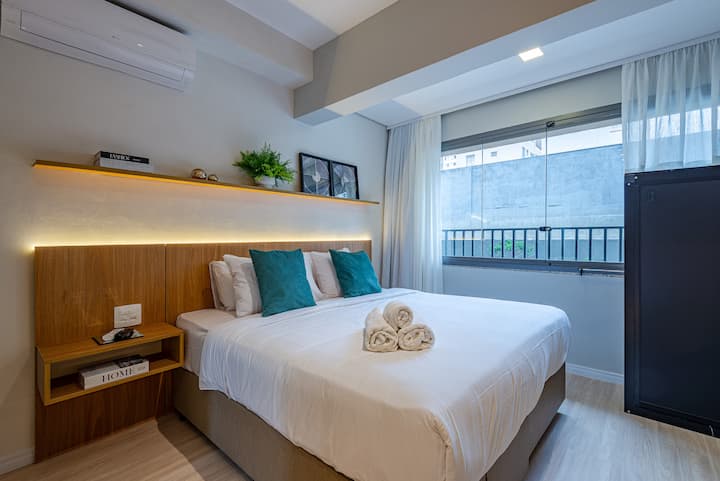 LUXURY Studio 6 min Ibirapuera | Subway, A/C, Wi-fi