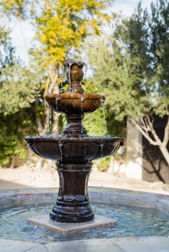 The queen bedroom welcomes you with pillow-top bed luxury linens, robes and a flat screen TV. Just outside your patio doors you will be led to the backyard and private patio, which is just steps away from the pool where you will be enchanted by the tranquil splashing of the water fountain and cactus garden. Our collection is consistently expanding, and we currently showcase over 80 specimens collected from around the world. You just may be lucky enough to witness to one of nature's rare wonders; a cactus flower from one of our many varieties.