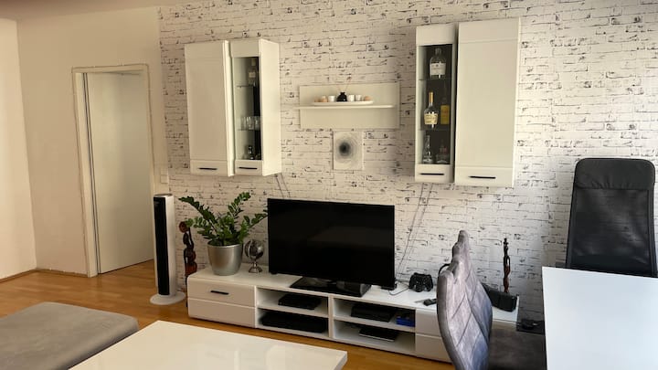 45-inch HDTV with Apple TV, standard cable, premium cable, Amazon Prime Video, Netflix