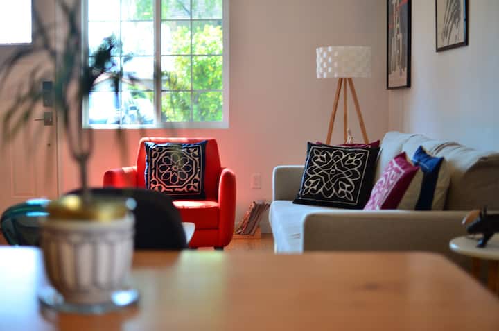 We invite you to stay in our secluded and charming guesthouse located in a quiet cul-de-sac, carefully designed for your comfort and enjoyment. You’ll be walking distance from restaurants, cafes, supermarket, shops, the movie theater Vidiots and much more.