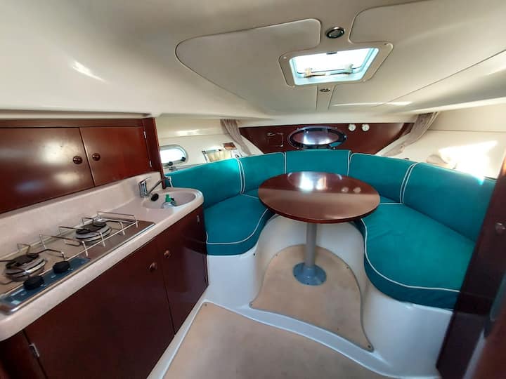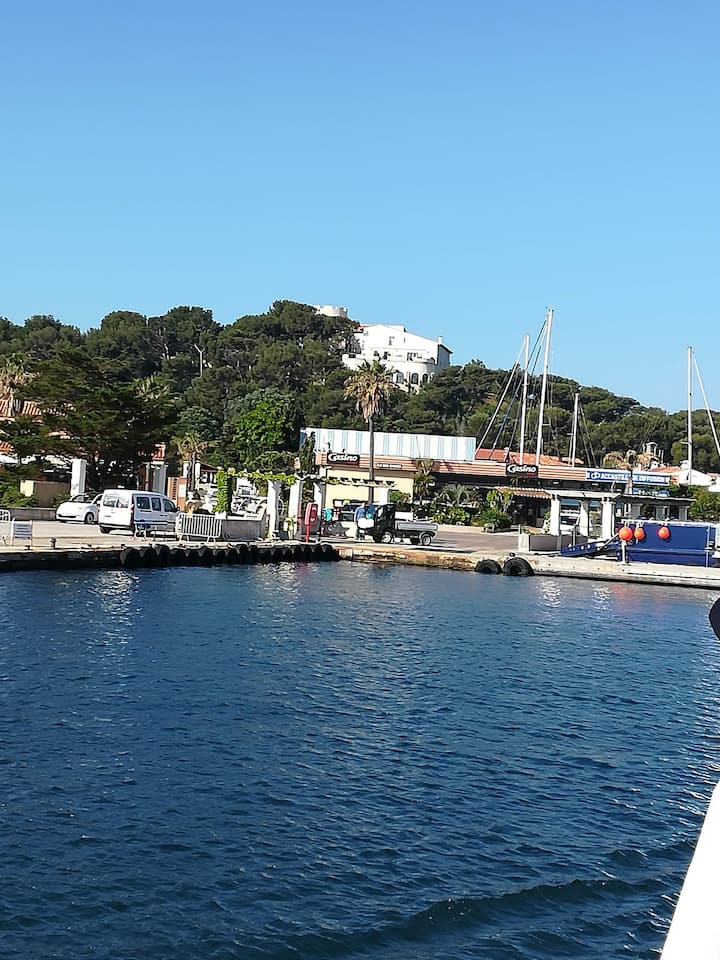 Atypical stay! Boat docked on an island.