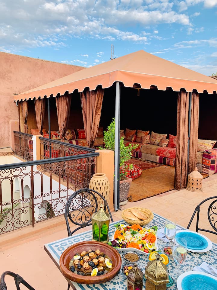 Our goal is to allow you to relax as much as possible and to be fully immersed in Moroccan culture while staying at our home. We offer daily lunch for €20 / person and dinner for €30 / person. Our cook is known for wonderful food so we recommend you eat in to enjoy the wonderful and authentic flavors. Our reviews show that our food is wonderful—often noted as the best our clients have had in Morocco! We are very proud of this. Each meal always includes one or more salads, a main course, light dessert, and water.