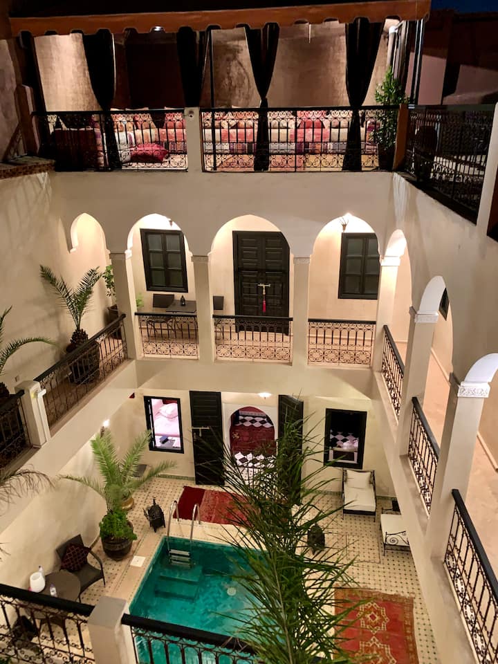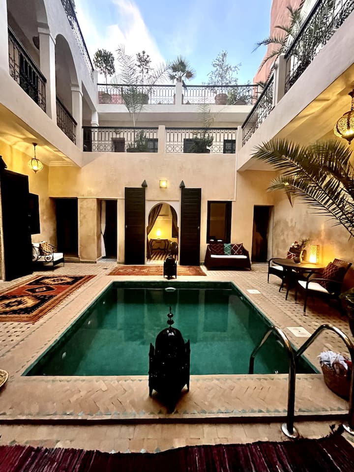 This bright & spacious riad offers 5 en suite bedrooms outfitted with toiletries from Les Sens de Marrakech, a large terrace, and a first floor patio with a 10' x 10' x 4.5' (3m x 3m x 1.5m) deep pool. Two poolside rooms make it easy for those who cannot navigate stairs.