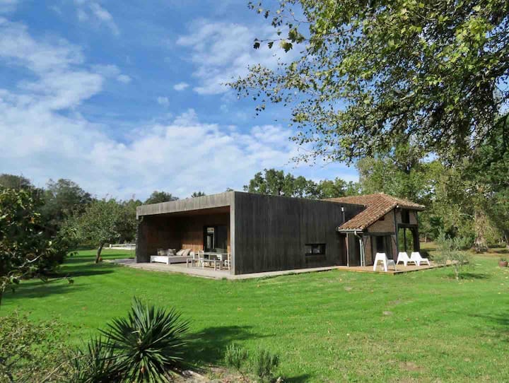 The house is rather isolated on the 15 acres lot with the view of the forest. It is THE perfect place to unwind. The picturesque village of Levignacq is 3km away. The more animated villages of St. Julien, Mezos and Lit & Mixe with a daily market in the summer are all 7km away. It is 14km to Contis Plage/ beach or Cap de l'Homy beach, a 15 min ride through beautiful landscape. You can also cycle… there are bike paths all the way from Levignacq to Contis Plage. We can help organise bicycles.