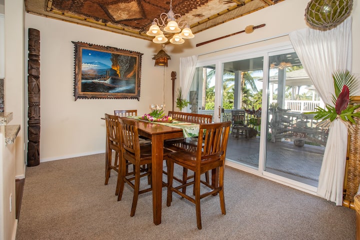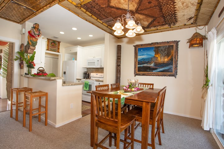 Hawaii artist that wanted to provide a home to our guest that didn't look like it could be anywhere in the world when you entered it... bring you back to a time of old Hawaii, that romantic, mysterious and exotic era of Nostalgic Waikiki. A place to share new memories with your ohana, not just a leather chair to rest your head on, but that bamboo chair that makes you sigh and say "ahhhhh Hawaii"