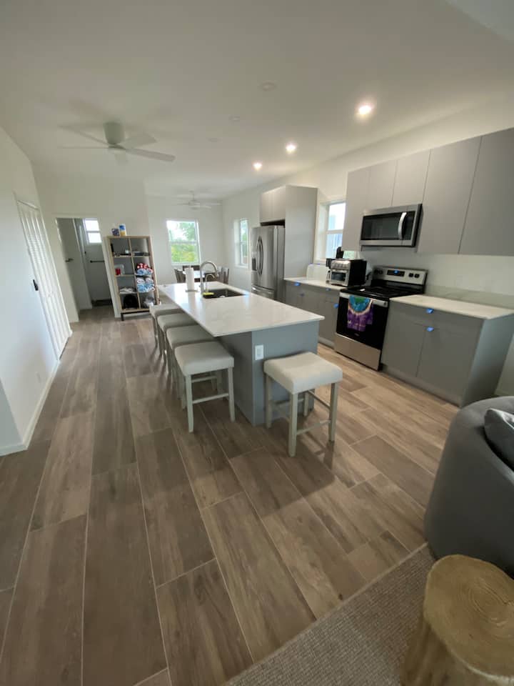 The Leeward House is a 4 Bed, 2.5 bath(additional outdoor shower) private home(double wide lot) situated on the canal directly across the street from our private beach. It was just remodeled in June of 2023. The home is run fully on solar as well, so when the power goes out which it can frequently, no worries and no load generator. You can access your private beach by walking across the street, down the driveway of Windward House and directly onto the beach. Everything on the island is within a short ride on a golfcart(they are street legal and can be rented). Leeward house has rental dockage where 4 boats can be tied up. There is a Weber charcoal grill under the deck that is yours to use. In town there is a convenient store, liquor store, hardware store and gift shop. On your way into town you'll pass the pink condo buildings, the Bahama Beach Club. The Bahama Beach Club is a great place to get lunch or dinner, but stop in and make reservations as they can get busy. Florence's Cafe(one of Martha Stewart's favorites places in the Bahamas) is in town and is a must-do for her sticky buns. Sunset Pizza and Treasure Sands are 15-20 minutes by cart towards the security gate you passed on yoru way into treasure cay, highly recommend! Access the main public beach is right in town as well. Whether you fly into Treasure Cay airport(TCB currently for private/charter only) or Marsh Harbour airport(MHH), we can arrange for our driver to pick you up and drop you off. Treasure Cay airport is about 15-20 minutes from the house and Marsh Harbour airport is roughly 40 minutes from the house. We can also have the house stocked for you if you wish as well for an additional charge. The only large grocery store is in Marsh Harbour, so you can stop on your way to Treasure cay if flying into MHH or go by car/taxi. There are many other surrounding islands to visit while staying in Treasure cay. There are ferries that run to these islands or you can rent a boat or take a charter. There is plenty of snorkeling, fishing and exploring to be had just about everywhere you go, and don't forget about visiting the swimming pigs and feeding the stingrays! We're happy to assist in anyway we can to make your trip a great one, please let us know how we can best help.