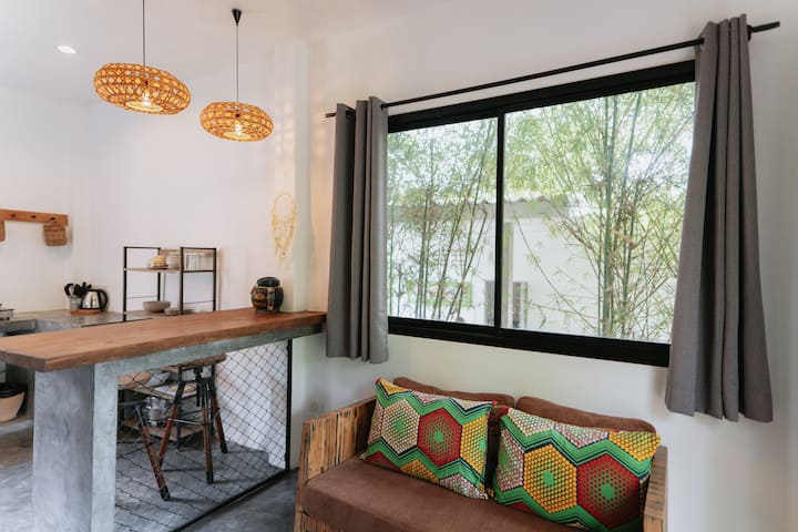 Next to all facilities, Thong Sala 5min walk from the house. 9min walk from beach.