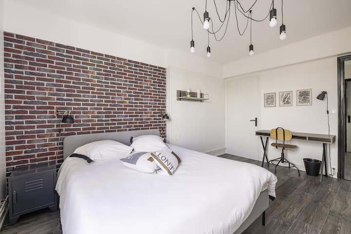 Ideally located, close to all transport (SNCF station, bus and tram) and amenities (shops, restaurants, bars, monuments...). It is located in the heart of the city of Caen on its marina. Newly renovated with modern decoration in 2020, perfectly equipped for a pleasant stay.