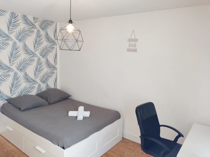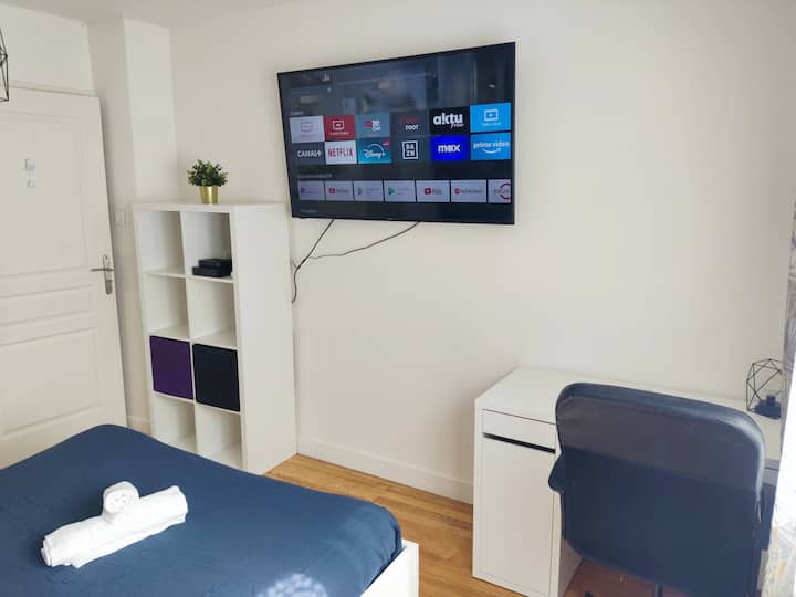 Fast wifi at 74 Mbps, plus a dedicated workspace in a common area.