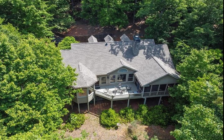 Close to everything beautifully decorated 4 bedroom 2600 sq ft mountain cabin with modern touches on 1.5 acres of private wooded land. With no neighbors except wildlife, it’s a great escape in the heart of Big Canoe. It’s 8 min to the main gate, between 3 lakes, near pools, playgrounds, trails, marina, Clubhouse, gym & beach. Enjoy self checkin, wireless phone chargers, Level 2 EV charger, smart TVs, cable TV, DVD player, smart lock, screened porch, rocking chairs, grill & ample parking.