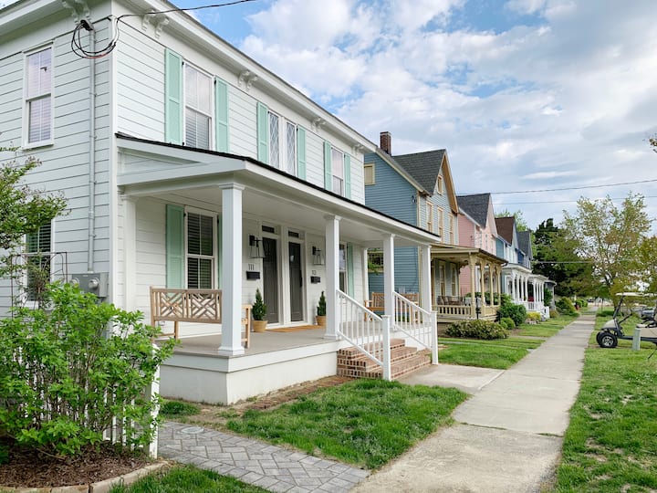 Doublemint features the historic charm of a classic Cape Charles home with a modern coastal twist! This 1910 historic home is located right in the middle of Town, just a short walk to shops, restaurants, and of course, the beautiful beach.