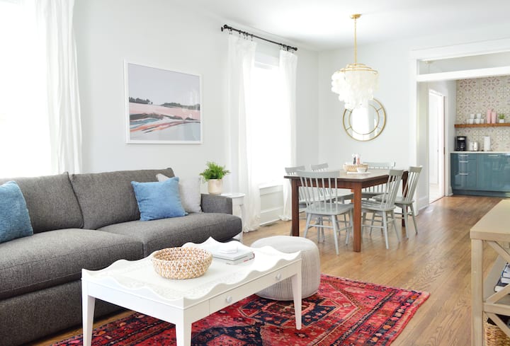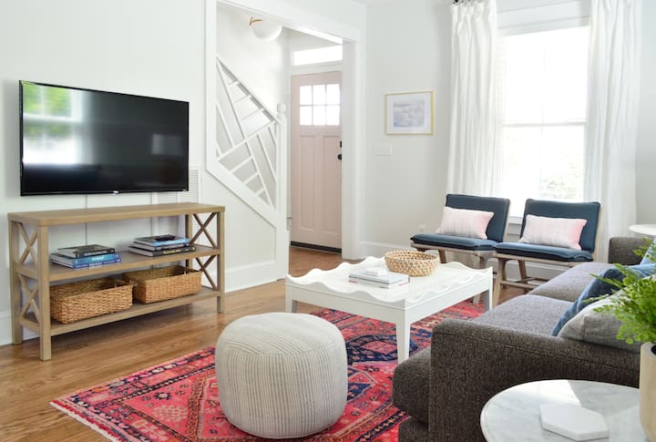 Doublemint duplex. Professionally renovated by Young House Love bloggers! The left side of Doublemint is available for your vacation. Sleeps 6 with 3 bedrooms and 2-1/2 baths.