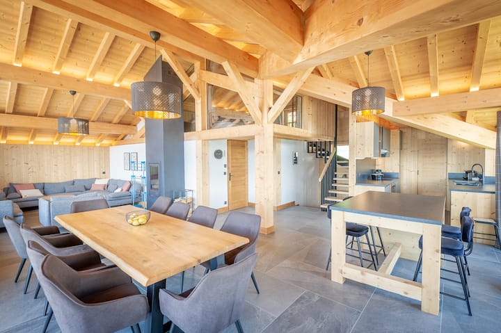 with a traditional wood and stone architecture, you are welcome in the triplex apartment "La Rose" located in the family chalet.