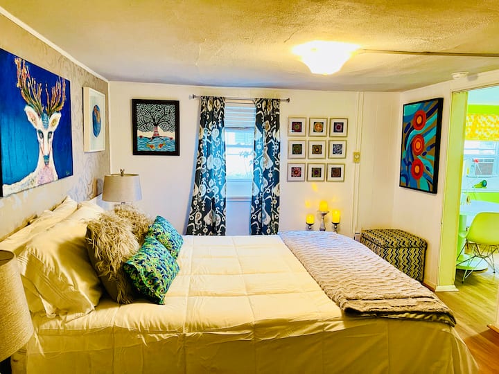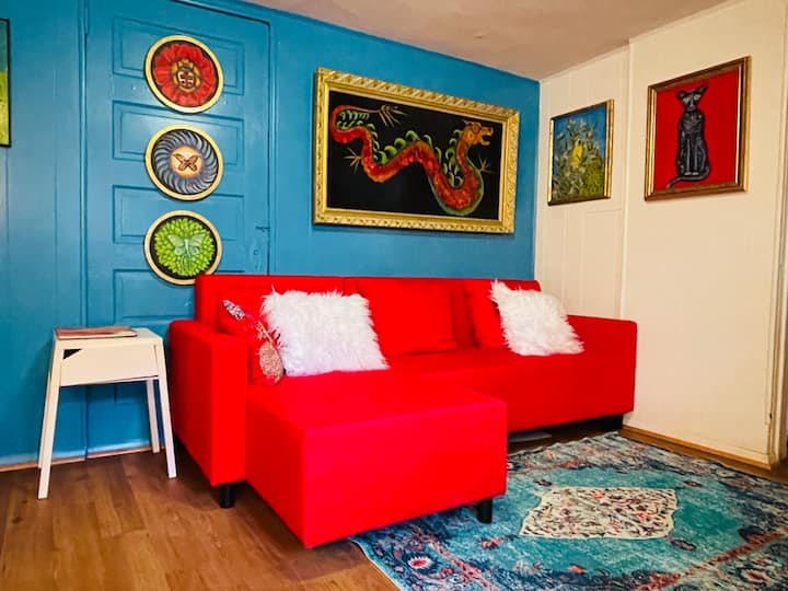 I am a local artist and art therapist. I enjoy hiking in our fabulous Blue Ridge Mountains, tubing in Rivanna River, gardening and of course making art! I feel very fortunate to live in a city full of fun events which include a lively art, theater, music and foodie scene. And I ❤️ all things furry! I have 2 friendly fur babies: a chubby and gregarious Chihuahua mix named Petey and a svelte but shy Chihuahua named Sammie.