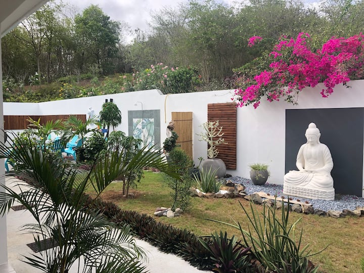 I am French and I live in Martinique with my husband for 5 years after spending 30 years in the USA where I was running a bed &breakfast . We built a villa 2 years ago with 2 adjacent apartments that we offer for seasonal rental. We also offer Ayurvedic massages on site. Our apartments are 300 m from the beach . See you soon.