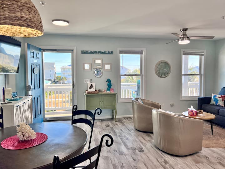 Welcome to Sea Coast Suites 18, a salty air retreat in the heart of Surf City! This second floor end unit is a stone’s throw away from everything you’ll want during your visit to the island. Enjoy sunrise and ocean views from the comfy deck chairs as you sip your morning coffee.