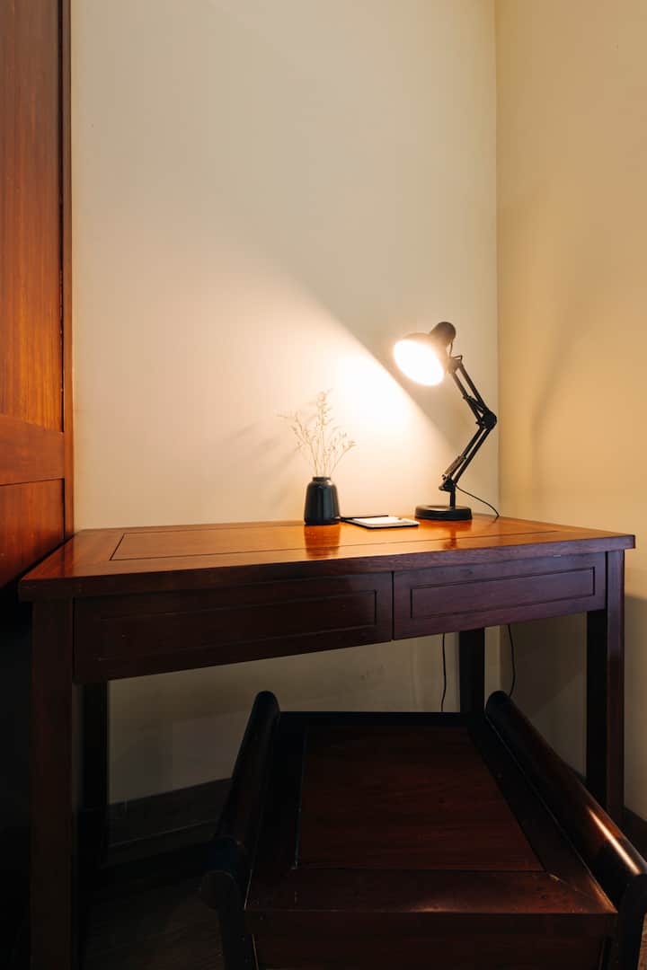 A room with wifi that’s well-suited for working.