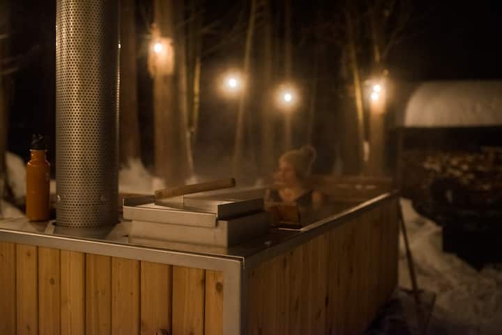 The Goodland wood-fired tub is nestled in the cedars and is solely for guest use - it's all yours! Kindling and firewood is provided and a brief tutorial on how to heat the tub is provided. Stoking the fire while sipping on your favourite beverage is a beautiful way to transition into the Kinfolk "slow+steady" philosophy. In the summer months, give yourself 1-2 hours to heat the tub. In the winter months, 3-4 hours.