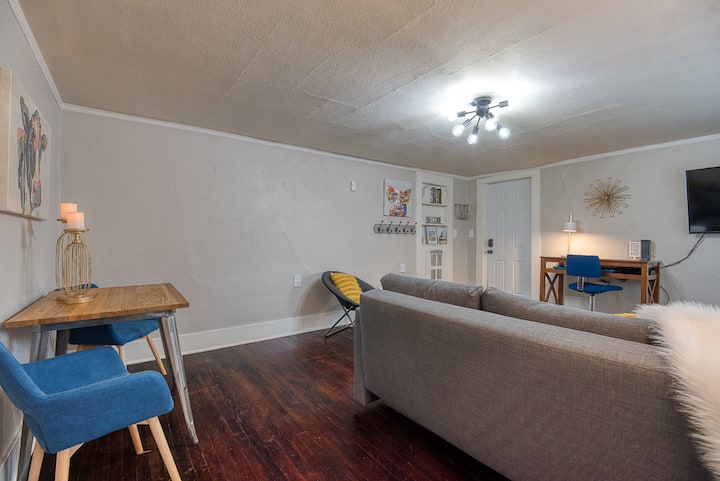 Curl up on the comfy sofa with a blanket and a book, or catch up on your favorite shows. Sofa folds out to a full-size bed for additional guests. Living area has additional seating and a designated work space. Large flat screen Smart TV, complete with Netflix, Amazon, Cable and WIFI to complete the necessities!
