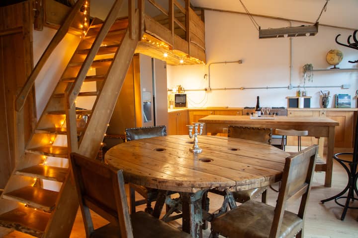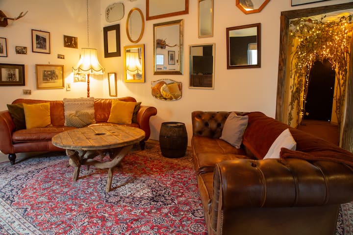 The Lodge is a converted barn semi-detached to 'The Grange' farm stay - that has a rustic / industrial design with an ethos of reusing materials from the local area & on the farm, giving you that extra special feeling / connection with nature when staying.