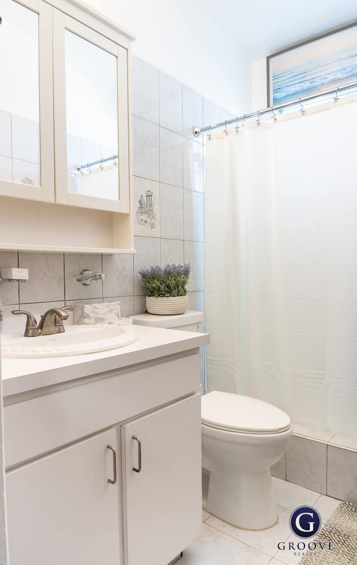 When it's time to revive your spirits, step into our elegant bathroom. It's a space filled with tasteful touches, from the tiled walls that surround you to the invigorating walk-in shower that's ready to awaken your senses. As you stand at the sleek vanity, you'll have everything you need to prepare yourself and leave feeling your absolute best. It's the perfect place to start or end your day, adding a touch of luxury to your routine.
