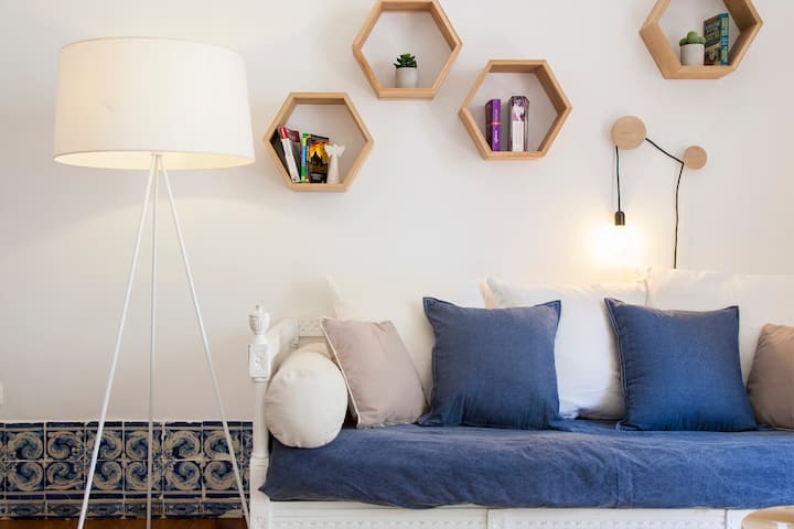 This old house was recently renovated and decorated preserving the original plan.The high ceilings and the eighteenth century Portuguese tiles are seamlessly combined with modern and very comfortable decor. A large window in the living room let in the famous Lisbon light.