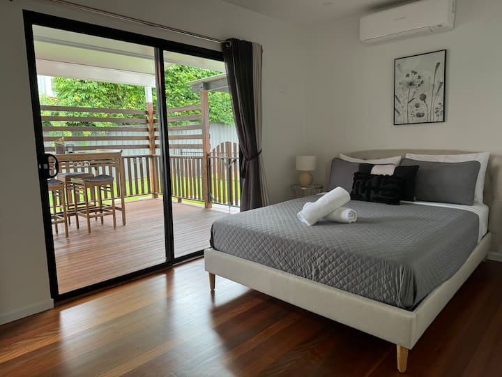 Welcome to our beautifully designed and spacious 4bed and 2bath family home, a perfect retreat for families and groups seeking a luxurious and comfortable stay. Nestled in a serene leafy neighbourhood, across from a large riverside park. our modern home offers a seamless blend of sophistication and coziness, ensuring an unforgettable experience for your stay. There are 2 x self contained studio in a semidetached building can be booked at the same time for larger group travellers if available.