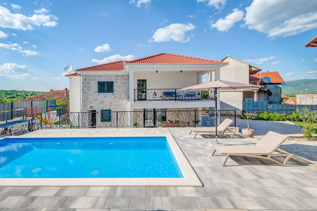 This beautiful villa or family holiday house is located in the Municipality of Zmijavci, on a hill in the hamlet of Podosoje. Beautiful natural surroundings, forests, original Dalmatian traditional stone houses that surround this property will delight you at all times. When building a house, interior, exterior, the owner paid attention to every detail, furniture, environment, etc. Traditional, Dalmatian architecture, pleasantly combined with modern details gives this villa a special charm.