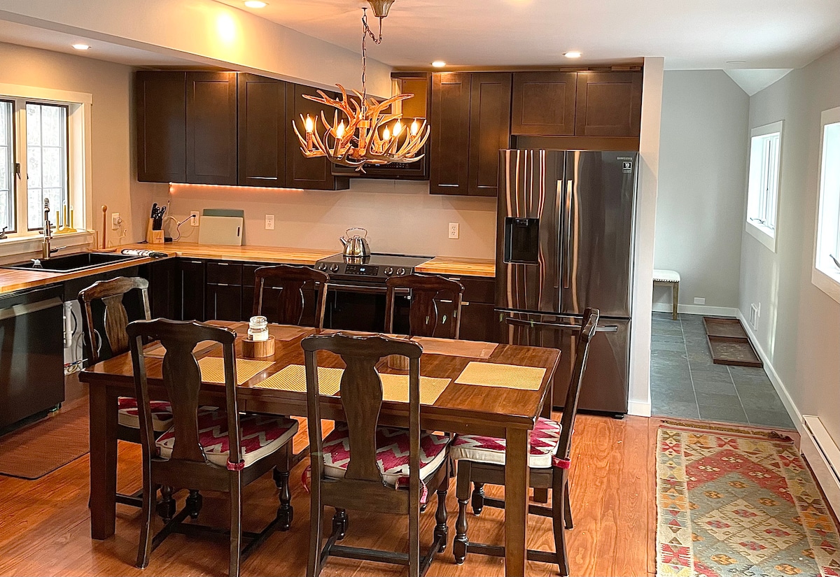 The Ledges Unit is a recently updated home away from home just 2 miles from Killington’s Skyship Gondola. It is only 15 minutes from Killington’s main base area and 20 minutes to Okemo. The Ledges is a 2 story chalet in a 4 unit building. View sister listings by clicking my Host profile picture below. The 1st floor has a kitchen, living room with a large stone mantel and wood stove, dining room, and full bathroom. The 2nd floor has 4 bedrooms and bathroom.