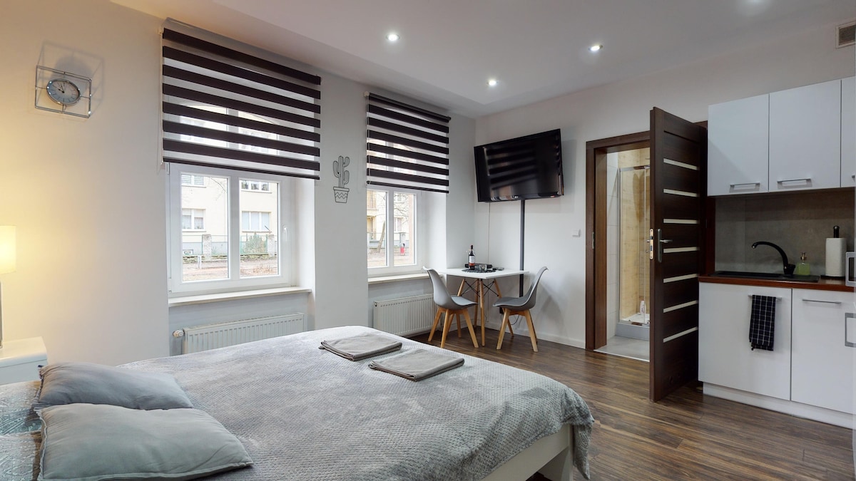 Komfortowy, klimatyczny w pełni wyposażony apartament oddalony zaledwie 300 metrów od rynku. Apartament znajduje się w kamienicy położonej w zabytkowej części miasta. W bezpośrednim sąsiedztwie znajdują się liczne restauracje, kawiarnie i sklepy. Goście apartamentu mają do dyspozycji telewizor, częścią jadalnią, łazienkę z pralką ,w pełni wyposażoną kuchnię , ekspres do kawy, lodówka, sztućce i naczynia, zawsze świeża pościel i ręczniki. Do dyspozycji gości jest bezpłatne WiFi.