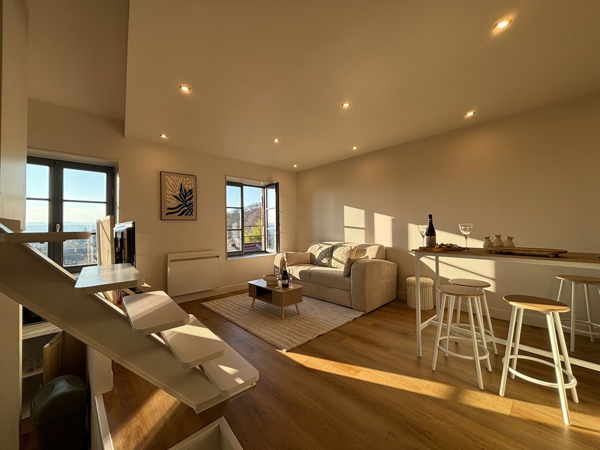 We will be happy to host you in this cozy, independent apartment, adjoining our house located 25 minutes from the center of Lyon and at the gates of Beaujolais. You will enjoy all the comforts of a brand new and very well equipped apartment but also the large garden of our house with views of the Monts d'Or and on sunny days of the heated pool. A kitchen open to the living room, a bedroom and a mezzanine with a double bed make up the apartment Parking in enclosed property