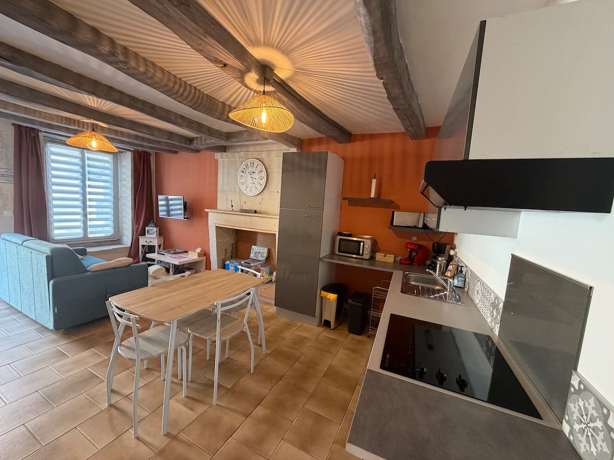 32 m2 furnished apartment, 2-star tourist accommodation. In the heart of the old town of La Roche Posay, 100 m from the center and all shops. The apartment is located on the 1st floor of a fully restored old house. It has Wi-Fi access and consists of: - An equipped kitchen (ceramic stovetop, coffee maker, kettle, microwave, mini oven and washing machine) - A sitting area (DVD player) - A bathroom with toilet AND a double bedroom Outside, a common courtyard.