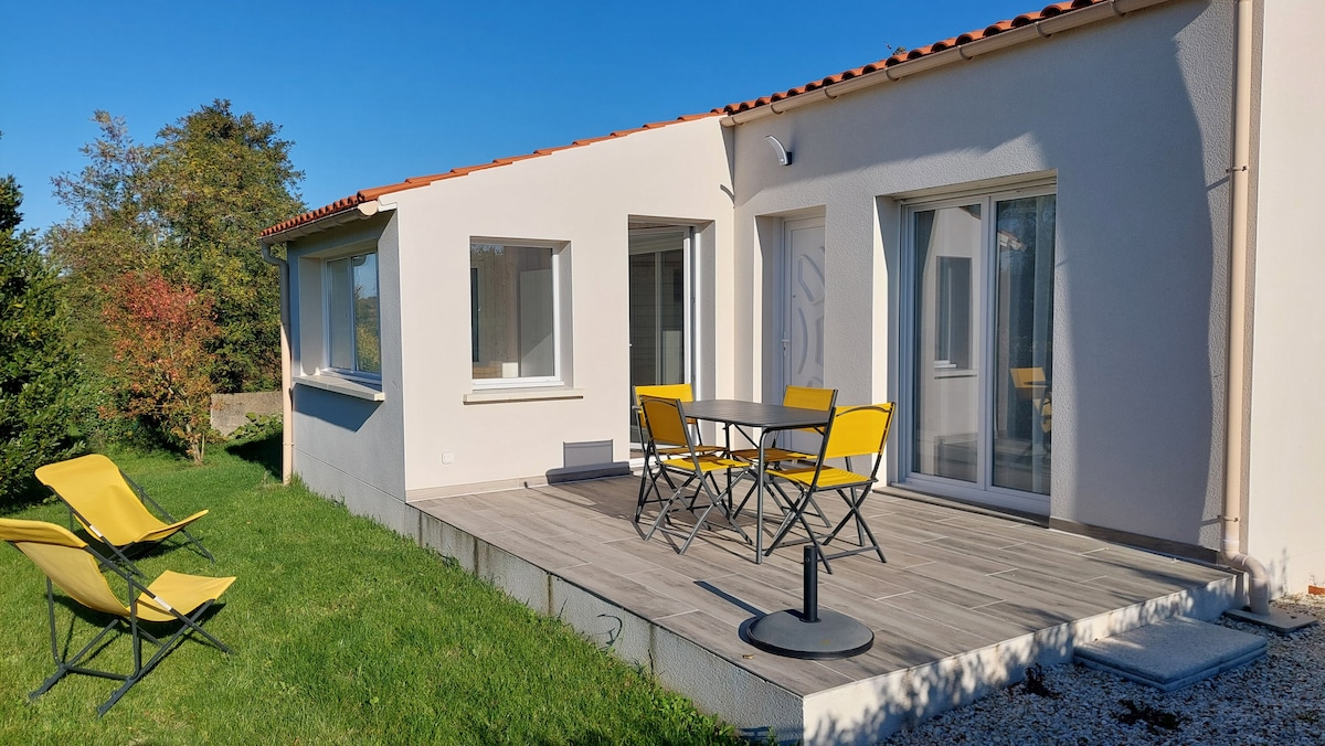 In October: REDUCED PRICE FROM 5 NIGHTS! Beautiful new house, bright, spacious, located in the village of Sablonceaux, but overlooking the fields, in the open air. Tranquility guaranteed, bakery 150m away, shops in Saujon (4km). Free parking next door. The house is located on the edge of my property, with a hedge separating the two houses. I'm here to advise you if needed. Summer period: I prefer reservations from Saturday to Saturday, but otherwise please contact me.