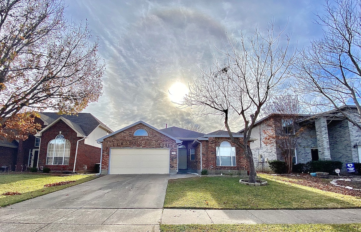 This cozy home is located in a friendly neighborhood and has everything you need to enjoy your stay here in Dallas county, with renovated spaces and an open-floor plan. It is located in a centralized location that is just 8 minutes away from downtown Garland, 30 minutes away from downtown Dallas, and about 15 minutes away from Firewheel! Guests can easily check in with a personalized keypad code. We look forward to hosting your stay!
